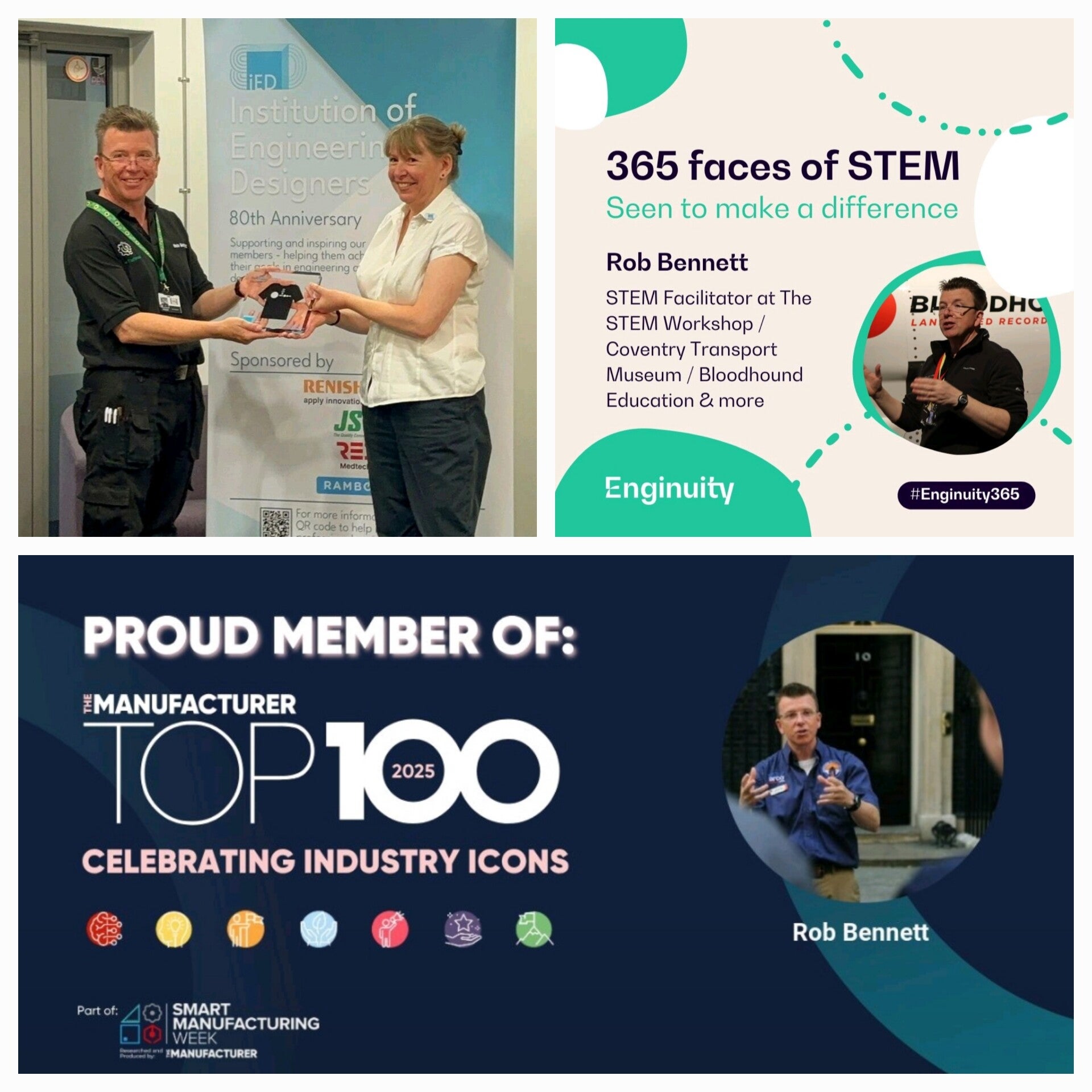 "During my time with Rob, he has shown excellent knowledge of both academic and the industrial side of teaching/delivery, building excellent relationships with both colleagues and students alike. I've found him to be pragmatic, forthright and keen to share constructive comments where appropriate. As an inspirational coach, mentor and teacher I find him without equal. Having observed many of his workshops, I've learnt many lessons on how to engage, encourage and inspire young and not so young students, in the many challenges and opportunities within industry and in particular manufacturing and design. He brings STEM activities to life, engages his audience and creates a wholly absorbing learning environment! It remains a pleasure to work with Rob and I look forward to working together again in the not so distance future."